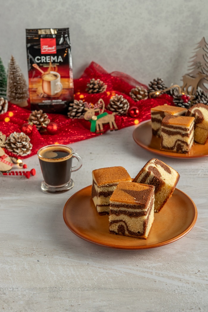 Peći u zagrijanoj rerni na 180 stepeni Celzijusa, 30 minuta. Servirati uz omiljenu Franck Crema tursku kafu koja se može pripremati u minuti, jednostavnim prelijevanjem vrućom vodom ili na klasičan način u džezvi. Oba načina pripreme donijet će istinski osjećaj zadovoljstva u kafi nježnog okusa i bogate arome zahvaljujući kremastim notama čokolade i kakaovca, koje su prirodno prisutne u probranim zrnima ove kave. Uživajte!