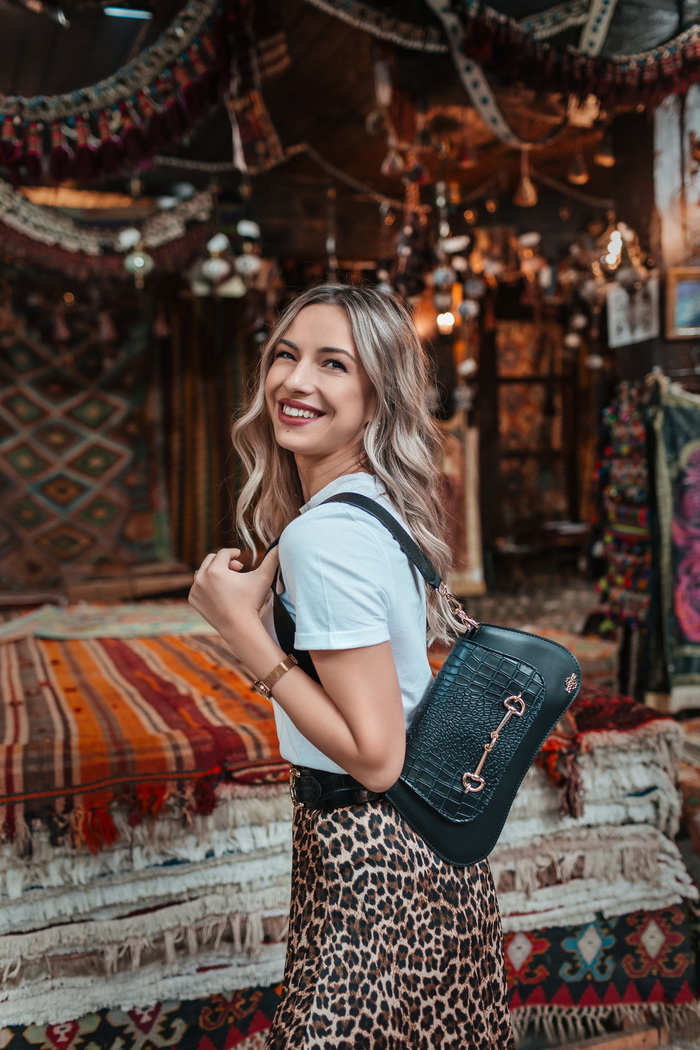 Šećer na kraju, nova omiljena Cocopat torbica inspirirana je modom devedesetih i tzv. “baquette” oblikom koji se ove jeseni vratio na velika vrata. Dolazi samo s kratkim remenom i vrlo lako se pretvori u clutch torbicu. Torba koju će obožavati trendsetterice dolazi u četiri boje s daškom animal printa i zlatnim detaljem na preklopu. Model Sara idealan je za djevojke koje se ne boje biti primijećene, koje pomiču granice i koje stvaraju trendove.