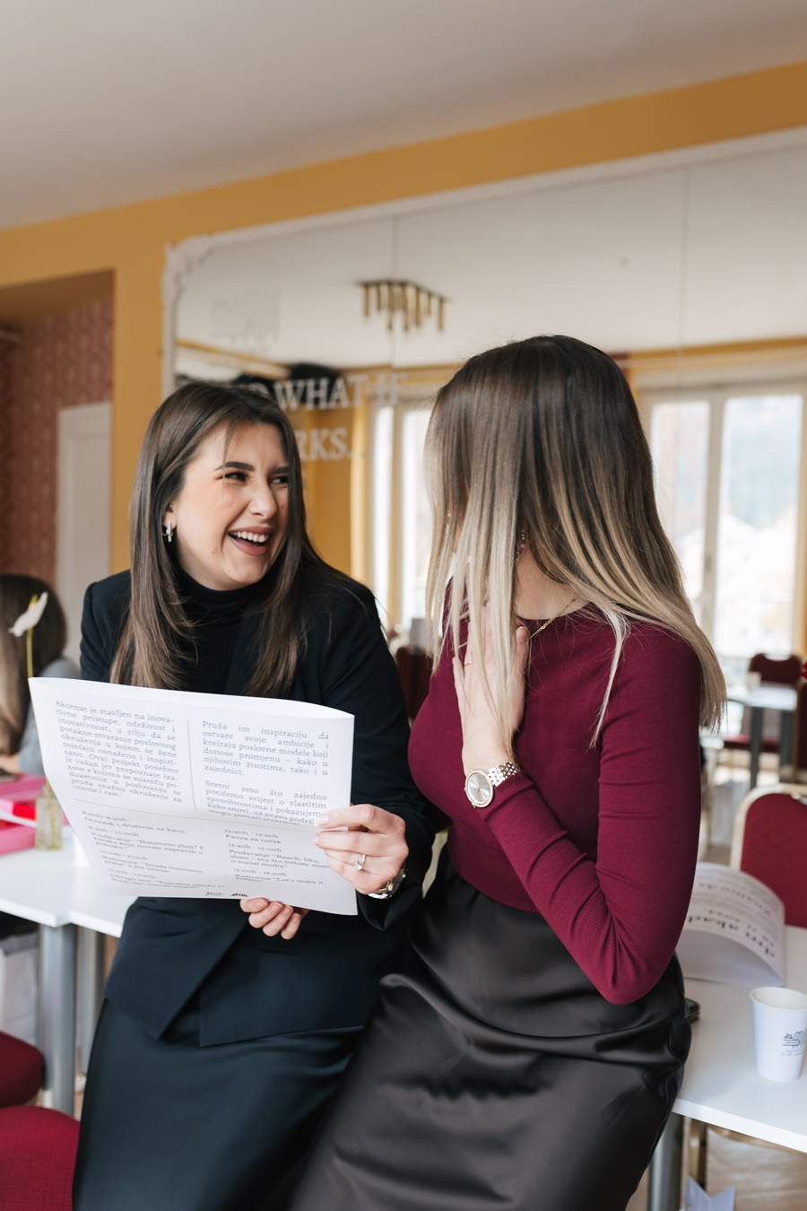 "Ovaj događaj je bio izuzetno inspirativan te mi je pružio mnoge korisne informacije i alate za dalji razvoj. Izlaganja mentora su obuhvatila ključne aspekte poduzetništva, kao što su strategije marketinga, upravljanje resursima i umrežavanja sa drugim mladim poduzetnicama. Činjenica da je akademija usmjerena ka osnaživanju mladih žena u poslovnom svijetu posebno me ohrabrila, a dobijeni savjeti i alati će zasigurno uticati na moj budući rad. Tokom današnje akademije, naučila sam kako da efikasno razvijam svoje ideje.
