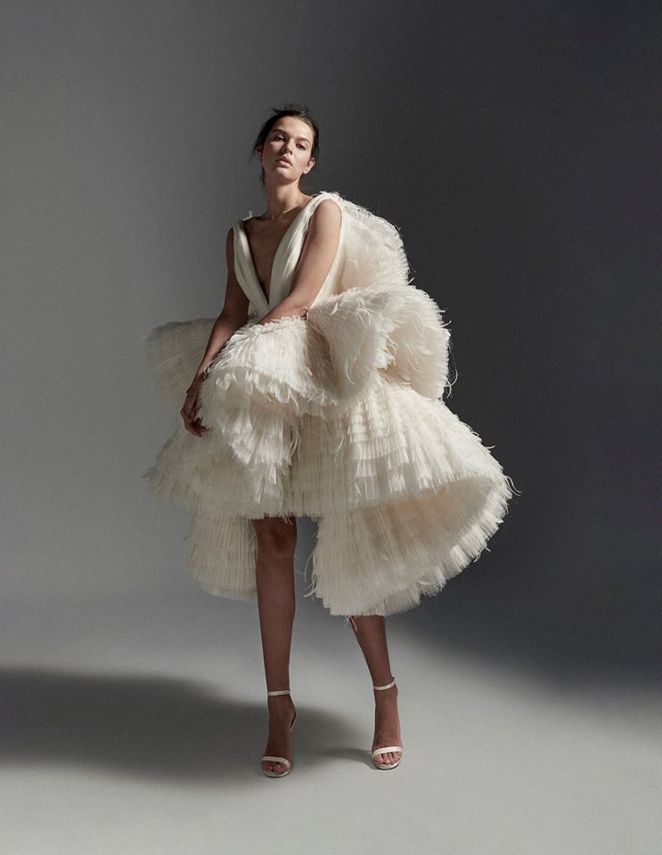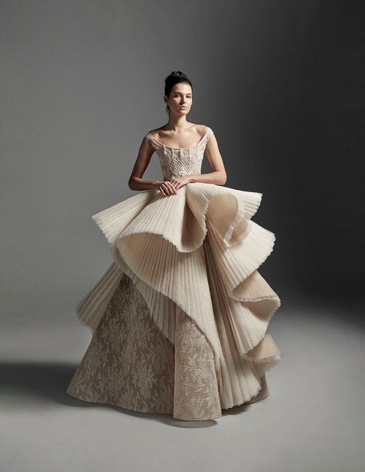U fokusu njegove proljetne kolekcije vjenčanica upravo je volumen i bogatstvo tekstura. Haljine su obogaćene volanima koje prati i asimetrija, naglašen struk i tisuće dekorativnih kristalića koji cijeloj priči daju raskošnu notu. Ženstvenom prizvuku kolekcije pridonose elegantni krojevi koji naglašavaju suptilno žensku figuru, a kompletnu liniju istražite kroz fotografije u nastavku.