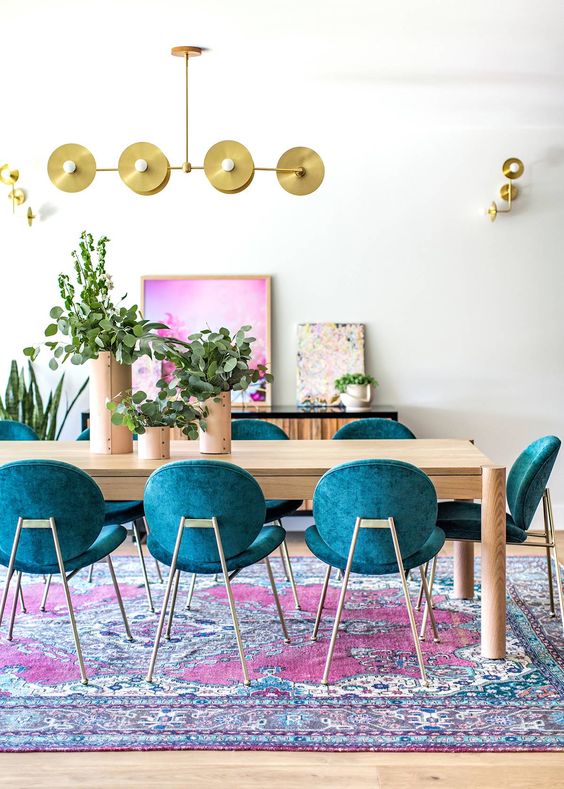 U minimalističkim, ženstvenim interijerima popularna je kombinacija ružičastih stolica od baršuna i mramora, kao i plavih stolica zaobljenih oblika te drveta. Stolice od baršuna u boji mente također su pokazale svestranost, a ukoliko i vi razmišljate o preuređenju blagovaonice, ovi chic interior kadrovi bit će vam sjajna inspiracija.