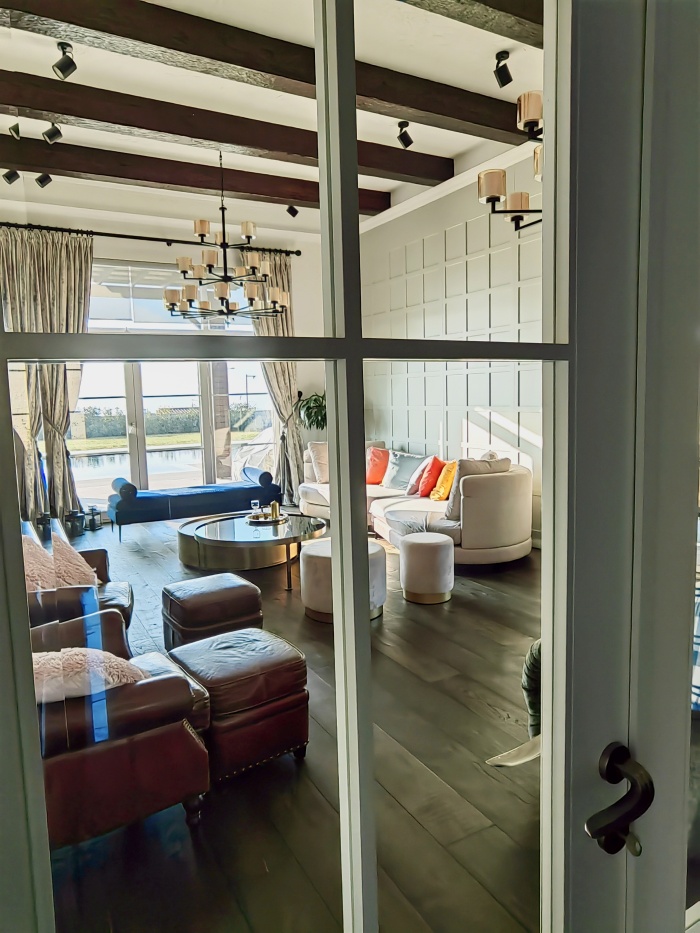Definitivno dnevni boravak, kada smo gledali projekat nekretnine, koncept kompleksa je takav da saloni imaju visoke plafone, kada kažem visoke, mislim na najmanje 5 metara visoke. To je bilo pravilo kompleksa prilikom kupovine zemljišta i isprva nam se ideja jako dopala, međutim u praksi je zaista bilo i još uvijek je teško pronaći i namještaj i detalje koji će biti dovoljno visoki da isprate visinu plafona te smo optičkim varkama radili na tome da plafon približimo koristeći dekorativne grede, velike lustere, panele u obliku kvadrata kako bi preusmjerili pažnju sa pravougaonik oblika salona, parket u tamnoj boji i mnoge slične detalje. Često se šalimo da ne možemo pronaći ni dovoljno visok televizor ni tepih.